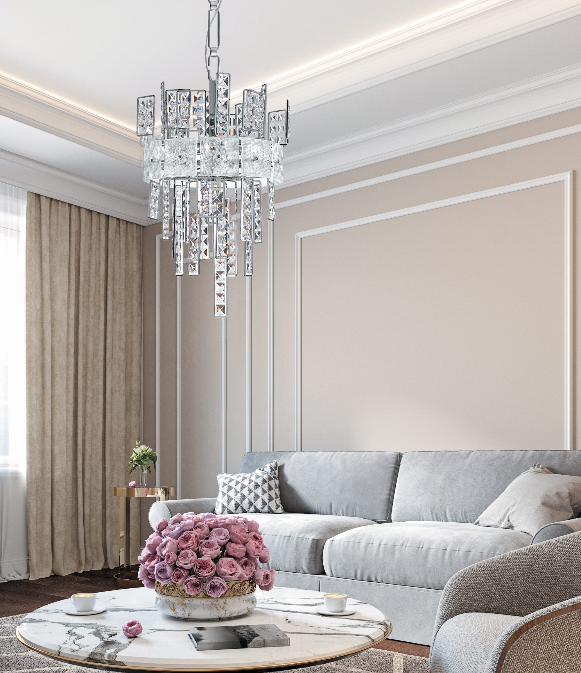Lampade a sospensione della collezione Crystalline nel progetto di un appartamento privato in Russia